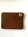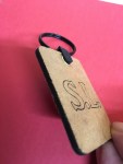 Rectangle : cuir naturel épais (2 mm), marron clair, 5 x 4 cm, initiales incluses (9 €)
