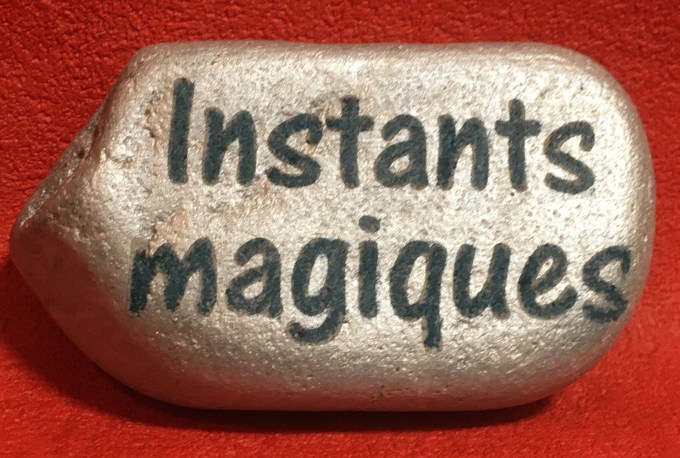 En fonction de l’origine du galet, de sa consistance, de son coloris.. : il est de préférence gravé brut mais, lorsque la gravure ne l’impacte pas de manière suffisamment visible : il est peint de plusieurs couches. C’est alors le creusement de cette peinture qui fera apparaître la texture d’origine du galet.