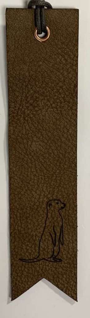 Marque-page, en cuir véritable, gravé – format 3,5 x15 cm – oeillet et cordon fourni –