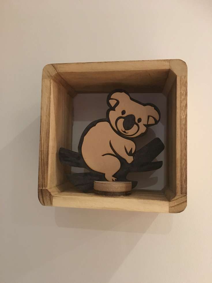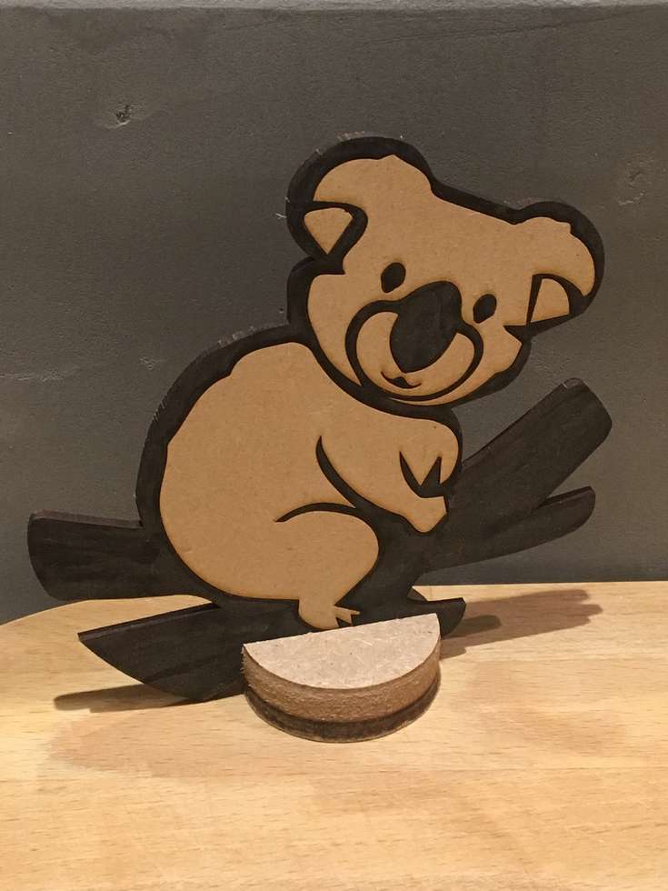 Mention « coup de coeur » pour ce gentil koala qui nous fait craquer ! Découpé sur du bois recyclé (Medium 3mm) et peint à la main. Il se pose sur un support spécialement conçu à cet effet. Il est au tarif de 12 € (+ 2,50 €) le support et peut se faire message d’un petit mot gravé.