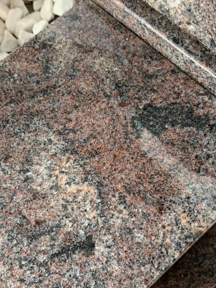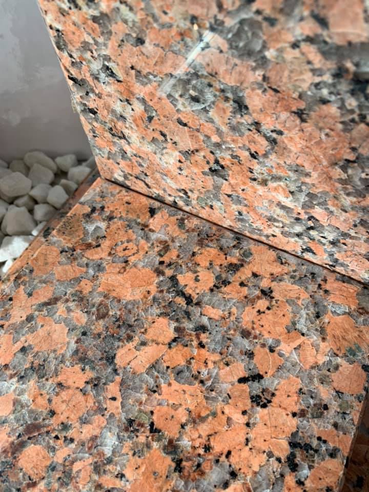 Réf n°3 : granit moucheté rose / dimensions : 25 (L) x 45 (l) x 20 (H) / poids : 12 kg / 70 € (+ port env. 43 €) – ci-dessous :
