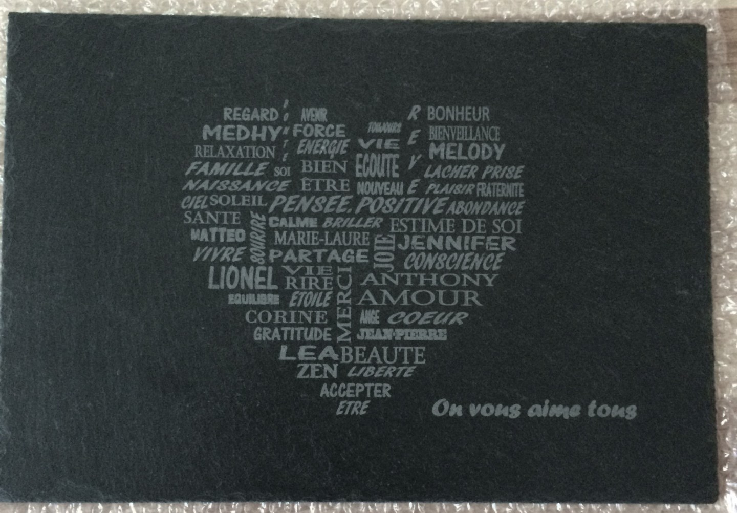 Gravure personnalisée sur Ardoises / Galets / Bois …