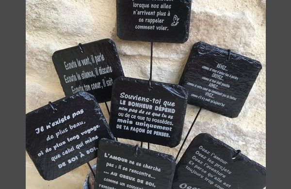 Ardoises naturelles découpées à la main (brutes, peintes ou vernies) 6,50 € Format env. : 7,5 cm x 6 cm Un message positif très personnalisé et unique sur cette ardoise… Read more Vibrations positives →