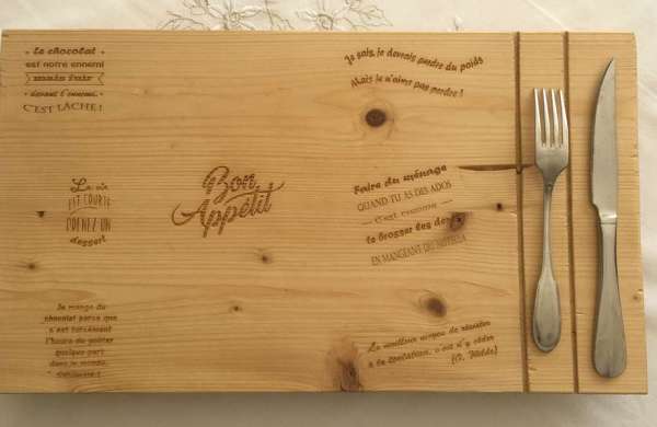 Personnalisation d’une planche à découper « faite maison ». Notre inspiration porte sur des citations culinaires ; votre idée pourra être très différente : le but étant la création d’un support unique… Read more Planche à découper →